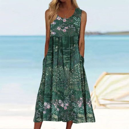 $68.99Original price was: $68.99.$45.99Current price is: $45.99.Description: Sleeve Length: Sleeveless Pattern Type: Floral Neckline: Round Neck Dress Length: Midi Side Pockets Silhouette: A-line Material: 40% Elastane, 60% Rayon Machine Washable Size Chart: Size Bust Length inch cm inch cm S 36 92 46 117 M 38 96 47 120 L 40 101 48 123 XL 42 107 50 126…