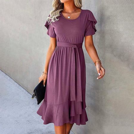 $71.99Original price was: $71.99.$48.99Current price is: $48.99.Description: Neckline: Round Neck Sleeve Length: Short Sleeve Dress Length: Midi Pattern Type: Plain Silhouette: A-line Material: 40% Elastane, 60% Rayon Machine Washable Size Chart: Size Bust Length Sleeves inch cm inch cm inch cm S 35 88 43 108 7 19 M 36 92 43 110 8 20 L 38 97…