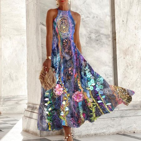 $58.99Original price was: $58.99.$42.99Current price is: $42.99.Description: This super-chic ankle-length maxi dress features an oceanic ombre blue/purple and an ethereal garden. The high neck collar and A-line silhouette are figure-flattering and comfortable for any time, making this colorful dress easy to dress up or down with flats and heels. Neckline: Round Neck Sleeve Length: Sleeveless Dress…