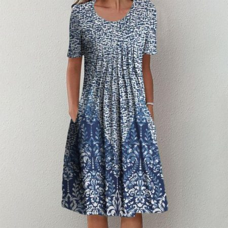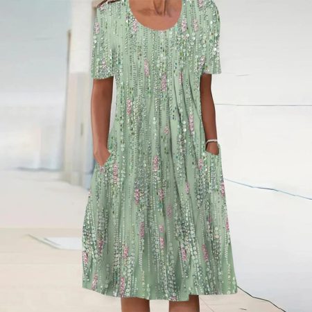 $60.99Original price was: $60.99.$45.99Current price is: $45.99.Description: Neckline: Round Neck Sleeve Length: Short Sleeve Dress Length: Midi Pattern Type: Print Silhouette: A-line Side Pockets Material: 40% Elastane, 60% Rayon Machine Washable Size Chart: Size Bust Length Sleeves inch cm inch cm inch cm S 38 96 42 107 9 23 M 39 100 43 110 9 24 L 41 105…
