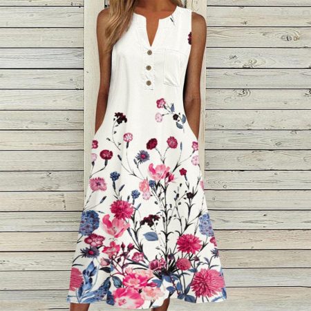 $66.99Original price was: $66.99.$42.99Current price is: $42.99.Description: Sleeve Length: Sleeveless Pattern Type: Floral Dress Length: Midi Neckline: Round Neck Side Pockets Silhouette: A-line Material: 35% Elastane, 65% Rayon Machine Washable Size Chart: Size Bust Length inch cm inch cm S 36 92 46 117 M 38 96 47 120 L 40 101 48 123 XL 42 107 50…