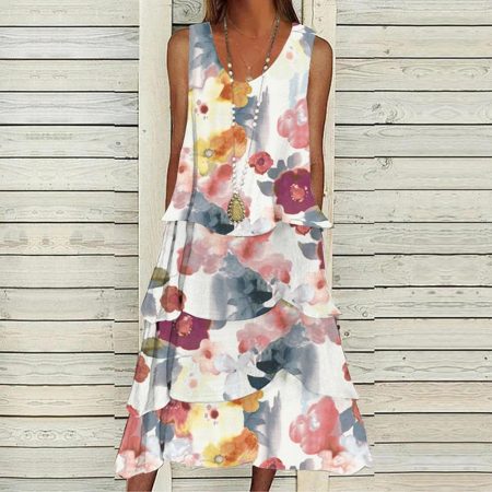 $69.99Original price was: $69.99.$48.99Current price is: $48.99.Description: Neckline: V-neck Sleeve Length: Sleeveless Dress Length: Midi Pattern Type: Floral Silhouette: Fit and Flare Material: 45% Elastane, 55% Rayon Machine Washable Size Chart: Size Bust Length inch cm inch cm S 35 88 50 127 M 36 92 51 130 L 38 97 52 133 XL 41 103 54 136…
