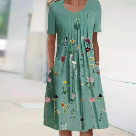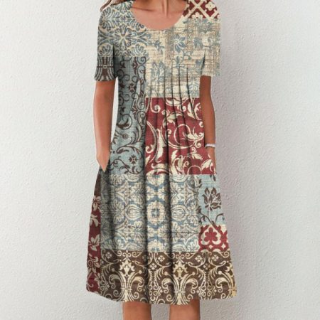 $64.99Original price was: $64.99.$46.99Current price is: $46.99.Description: Neckline: Round Neck Sleeve Length: Short Sleeve Pattern Type: Print Dress Length: Midi Side Pockets Silhouette: A-line Material: 40% Elastane, 60% Rayon Machine Washable Size Chart: Size Bust Length Sleeves inch cm inch cm inch cm S 38 96 42 107 9 23 M 39 100 43 110 9 24 L 41…
