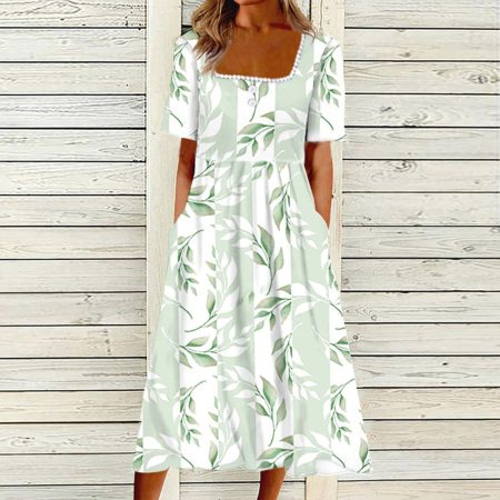 $60.99Original price was: $60.99.$42.99Current price is: $42.99.Description: This relaxed-fit midi dress features an ombre striped green garden print, making it summer-time ready yet also perfect for year-round. A square neckline and short sleeves highlight your favorite accessories. Side pockets and pleats give it a comfortable vibe, making this prairie dress perfect for wearing with heels, flats,…