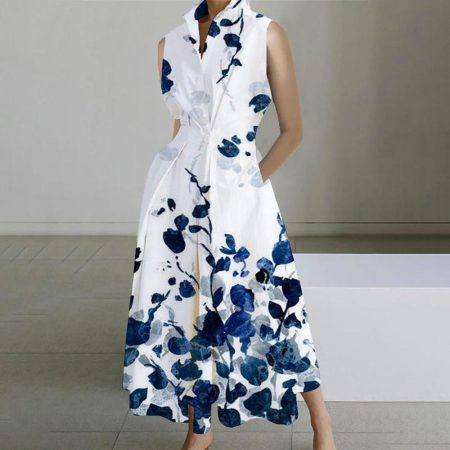 $63.99Original price was: $63.99.$47.99Current price is: $47.99.Description: Sleeve Length: Sleeveless Dress Length: Midi Pattern Type: Print Collared Silhouette: A-line Side Pockets Material: 40% Elastane, 60% Rayon Machine Washable Size Chart: Size Bust Length inch cm inch cm S 38 96 52 132 M 39 100 53 135 L 41 105 54 138 XL 44 111 56 141 XXL…