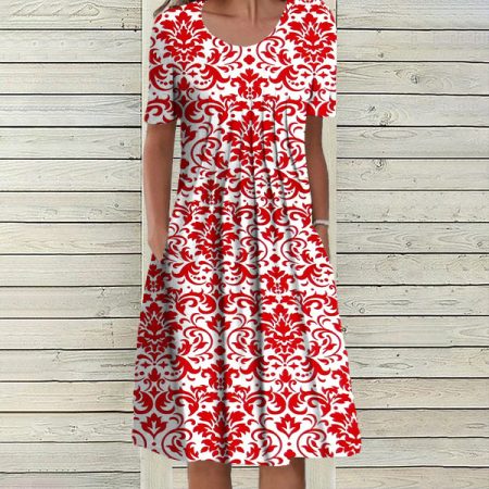 $64.99Original price was: $64.99.$46.99Current price is: $46.99.Description: Neckline: Round Neck Sleeve Length: Short Sleeve Pattern Type: Print Dress Length: Midi Side Pockets Silhouette: A-line Material: 40% Elastane, 60% Rayon Machine Washable Size Chart: Size Bust Length Sleeves inch cm inch cm inch cm S 38 96 42 107 9 23 M 39 100 43 110 9 24 L 41…