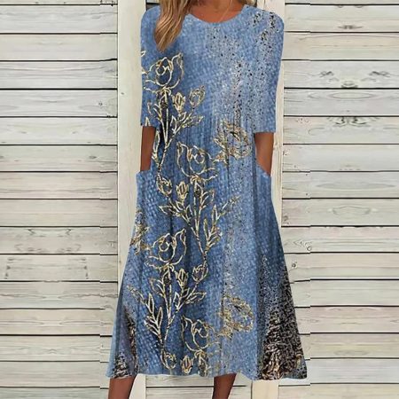 $66.99Original price was: $66.99.$46.99Current price is: $46.99.Description: Neckline: Round Neck Sleeve Length: 3/4 Sleeve Dress Length: Midi Silhouette: A-line Pattern Type: Print Side Pockets Material: 35% Elastane, 65% Rayon Machine Washable Size Chart: Size Bust Length Sleeves inch cm inch cm inch cm S 38 96 46 117 14 36 M 39 100 47 120 15 37 L 41 105…