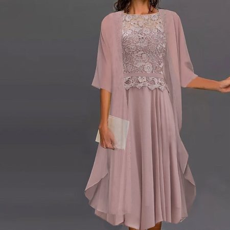 $85.99Original price was: $85.99.$56.99Current price is: $56.99.Look elegant and stylish in this beautiful pink two-piece midi dress set. Featuring a half sleeves and lace top, and a flowing midi skirt with waist band details, you’ll be sure to turn heads in this casual yet dressy ensemble. Description: Neckline: Round Neck Sleeve Length: Half Sleeve Dress Length: Midi Silhouette: A-line Material:…