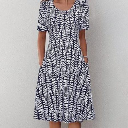 $71.99Original price was: $71.99.$46.99Current price is: $46.99.Description: Neckline: Round Neck Sleeve Length: Short Sleeve Dress Length: Midi Silhouette: A-line Pattern Type: Print Side Pockets Material: 40% Elastane, 60% Rayon Machine Washable Size Chart: Size Bust Length Sleeves inch cm inch cm inch cm S 38 96 42 107 9 23 M 39 100 43 110 9 24 L 41…