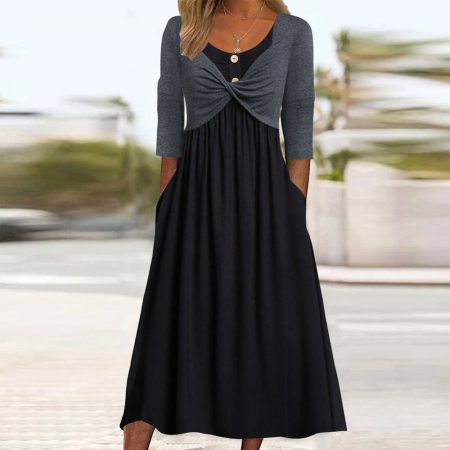$79.99Original price was: $79.99.$51.99Current price is: $51.99.Description: Neckline: Round Neck Sleeve Length: 3/4 Sleeve Dress Length: Midi Silhouette: A-line Pattern Type: Color Block Side Pockets Material: 35% Elastane, 65% Rayon Machine Washable Size Chart: Size Bust Length Sleeves inch cm inch cm inch cm S 35 89 46 117 14 35 M 36 92 47 120 14 36 L 38 97…