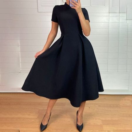 $66.99Original price was: $66.99.$47.99Current price is: $47.99.Description: Sleeve Length: Short Sleeve Dress Length: Midi Pattern Type: Plain Neckline: Round Neck Silhouette: A-line Material: 35% Elastane, 65% Rayon Machine Washable Size Chart: Size Bust Length Sleeves inch cm inch cm inch cm S 35 88 46 117 7 17 M 36 92 47 120 7 18 L 38 97…