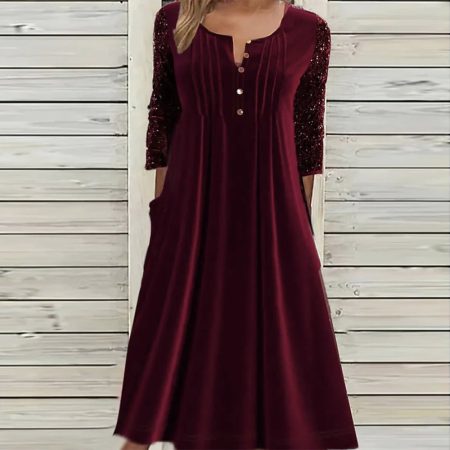 $68.99Original price was: $68.99.$48.99Current price is: $48.99.Description: Neckline: Round Neck Sleeve Length: 3/4 Sleeve Dress Length: Midi Silhouette: A-line Pattern Type: Plain Material: 35% Elastane, 65% Rayon Machine Washable Size Chart: Size Bust Length Sleeves inch cm inch cm inch cm S 38 96 52 132 17 43 M 39 100 53 135 17 44 L 41 105 54 138…