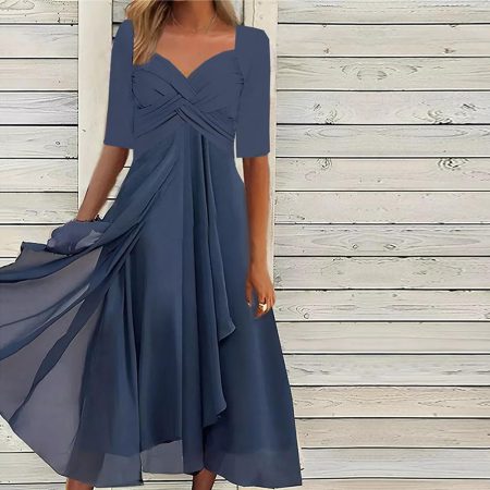 $67.99Original price was: $67.99.$49.99Current price is: $49.99.Description: Neckline: V-Neck Sleeve Length: Half Sleeve Dress Length: Midi Silhouette: A-line Pattern Type: Plain Material: 45% Elastane, 55% Rayon Machine Washable Size Chart: Size Bust Length Sleeves inch cm inch cm inch cm S 34 86 46 117 10 26 M 35 90 47 120 11 27 L 37 95 48 123 11 28 XL…
