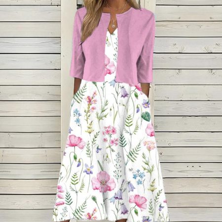 $68.99Original price was: $68.99.$48.99Current price is: $48.99.Description: Get summer-ready in effortless style with this versatile midi dress, giving the illusion of two separate pieces with a pink long sleeve/cropped top. A pastel-colored floral print adds vibrancy to this chic dress with a cinched waist. Adorable side pockets finish the look, perfect for wearing to any special…