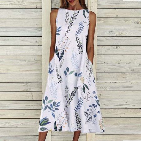 $68.99Original price was: $68.99.$45.99Current price is: $45.99.Description: Sleeve Length: Sleeveless Pattern Type: Floral Neckline: Round Neck Dress Length: Midi Side Pockets Silhouette: A-line Material: 40% Elastane, 60% Rayon Machine Washable Size Chart: Size Bust Length inch cm inch cm S 36 92 46 117 M 38 96 47 120 L 40 101 48 123 XL 42 107 50 126…