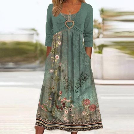 $71.99Original price was: $71.99.$47.99Current price is: $47.99.Description: Neckline: Round Neck Sleeve Length: Long Sleeve Dress Length: Midi Silhouette: A-line Pattern Type: Floral Side Pockets Material: 45% Elastane, 55% Rayon Machine Washable Size Chart: Size Bust Length Sleeves inch cm inch cm inch cm S 35 88 46 117 24 60 M 36 92 47 120 24 61 L 38 97…