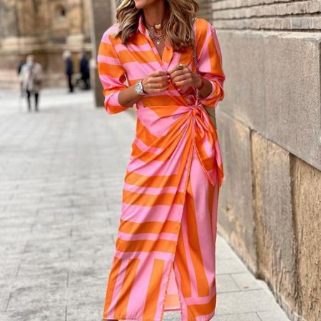 Description: Neckline: Collared Sleeve Length: Half Sleeve Dress Length: Midi Pattern Type: Print Silhouette: A-line Material: 40% Elastane, 60% Rayon Machine Washable Size Chart: Size Bust Length Sleeves inch cm inch cm inch cm S 38 96 46 118 15 39 M 39 100 47 120 16 40 L 41 105 48 122…